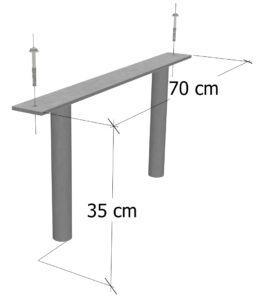 Kit. di accoppiamento superiore per Barriere Mini New Jersey. Costituito da piastra in piatto zincato da 750x80x8mm con n. 2 fori e con n. 2 tubolari zincati di Ø 48x350mm spessore 3,2 mm. saldati verticalmente sotto la piastra, compreso n. 2 turboviti zincate per cemento da 10x90mm per fissaggi